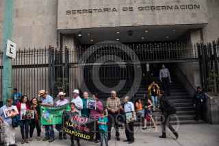 CIUDAD DE MÉXICO, 05MARZO2019.- Habitantes y representantes del pueblo Temacapulín ubicado en Jalisco, ofrecieron conferencia de prensa frente a las inmediaciones de la Secretaria de Gobernación (Segob), para anunciar los avances luego de una junta con integrantes de la SEGOB y Conagua. La organización pide la cancelación del megaproyecto de la presa Zapotillo, proyecto el cual una de sus afectaciones principales consiste en la inundación de los pueblos de Palmarejo, Acasico y Temaca. FOTO: ANDREA MURCIA /CUARTOSCURO.COM