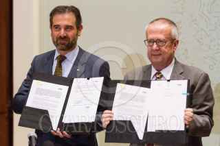 CIUDAD DE MÉXICO, 06MARZO2019.- Lorenzo Cordova, consejero Presidente del INE y Carlos Urzúa, secretario de Hacienda firmaron un convenio esta mañana en Palacio Nacional. FOTO: VICTORIA VALTIERRA /CUARTOSCURO.COM