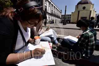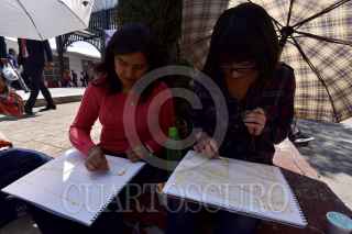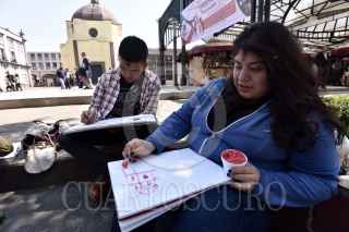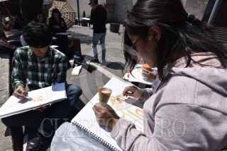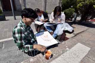 TOLUCA, ESTADO DE MÉXICO, 06MARZO2019.- Estudiantes de la licenciatura de Arte Digital de la UAEM realizaron una práctica de dibujo con helado en la Plaza Fray Andres de Castro. FOTO: ARTEMIO GUERRA BAZ /CUARTOSCURO.COM