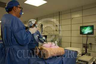 CIUDAD DE MÉXICO, 07MARZO2019.- Rubén Argüero Sánchez; Jefe de departamento de cirugía de la Facultad de Medicina y su equipo de doctores al termino del recorrido por los nuevos laboratorios, quirófanos y salas del departamento de cirugía, de la Facultad de Medicina del la Universidad Autónoma de México, esto se logró con una inversión de cerca de 20 millones entre la empresa Stryker y la universidad. FOTO: ROGELIO MORALES /CUARTOSCURO.COM