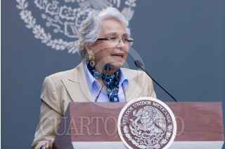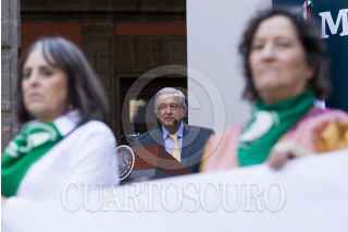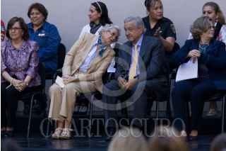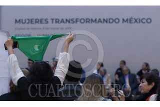 CIUDAD DE MÉXICO, 08MARZO2019.- Olga Sánchez Cordero, secretaría de Gobernación, y Andrés Manuel López Obrador, presidente de México, encabezaron el evento “mujeres construyendo el futuro” como parte de la conmemoración del Día Internacional de la Mujer. En la imagen, un grupo de mujeres protesta durante el discurso del presidente. FOTO: GALO CAÑAS /CUARTOSCURO.COM