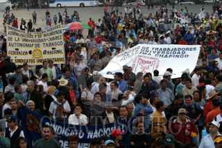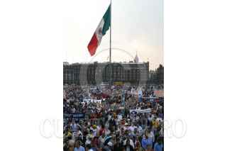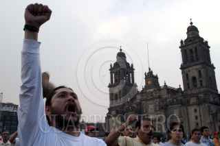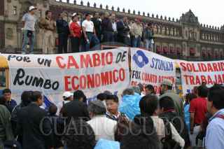 México, D.F. 26 OCTUBRE 2004.- Integrantes de sindicatos universitarios de diversas partes de la República se dieron cita en la explanada del zócalo capitalino luego de marchar por Av. Juárez exigiendo un aumento salarial. FOTO: Sandra Perdomo/CUARTOSCURO.COM