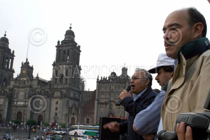 México, D.F. 26 OCTUBRE 2004.- Integrantes de sindicatos universitarios de diversas partes de la República se dieron cita en la explanada del zócalo capitalino luego de marchar por Av. Juárez exigiendo un aumento salarial. FOTO: Sandra Perdomo/CUARTOSCURO.COM