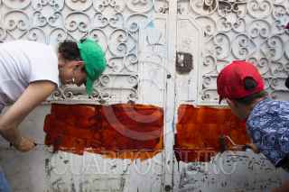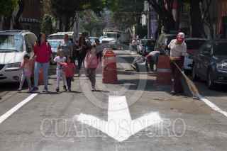 CIUDAD DE MÉXICO, 09MARZO2019.- Terminaron de pintar una calle como parte de las actividades del Sábado de Tequio en la colonia Anahuac, alcaldía Miguel Hidalgo. FOTO: GUADALUPE HERRERA /CUARTOSCURO.COM