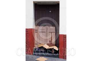 CUERNAVACA, MORELOS, 10MARZO2019.- Un indigente cubierto con cartones descansa en el quicio de una casa en el centro de la ciudad. F OTO: MARGARITO PÉREZ RETANA /CUARTOSCURO.COM