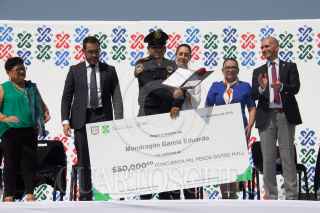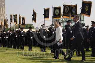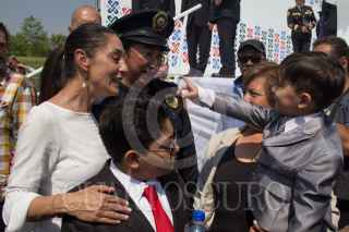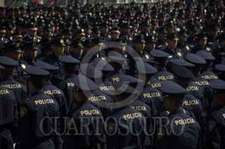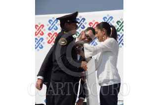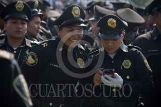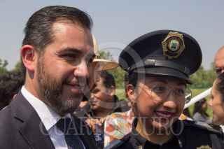 CIUDAD DE MÉXICO, 10MARZO 2019.- Jesús Ortega Martínez, titular de la Secretaria de Seguridad Pública y Diana Mercedes García Vázquez, Policía Segundo, al termino del evento de la Toma de Protesta de 2 mil 540 elementos de la Secretaria de Seguridad Ciudadana y el Reconocimiento del Policía del Mes en el Parque Bicentenario de la alcaldía Miguel Hidalgo. FOTO: GUADALUPE HERRERA / CUARTOSCURO.COM
