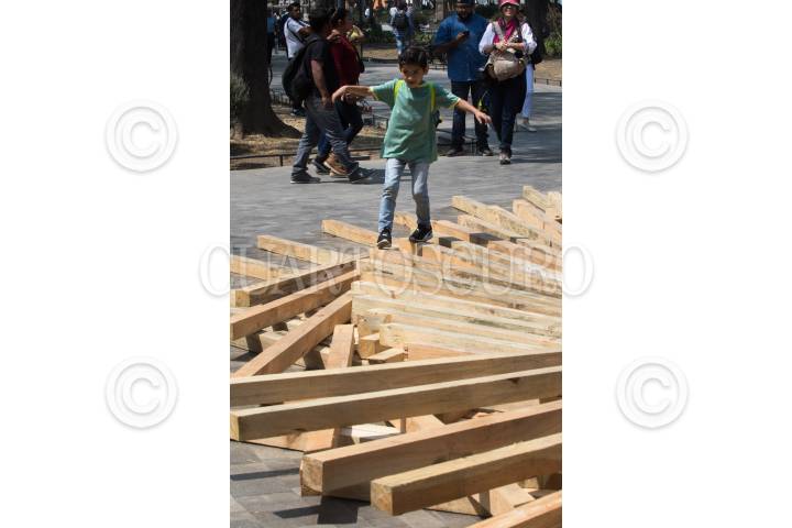 CIUDAD DE MÉXICO, 10MARZO2019.- Visitantes de la Alameda Central interactúan con una de la obras arquitectónicas del festival Mextrópoli. En esta sexta edición, se busca que los visitantes tengan una experiencia de interacción con las obras, así como una visualizad diferente, las obras estarán disponibles hasta el 12 de marzo. FOTO: GALO CAÑAS /CUARTOSCURO.COM