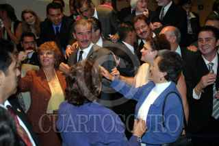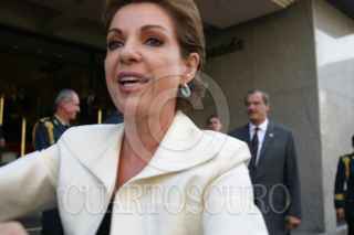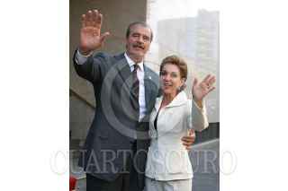 MEXICO, D.F. 02DICIEMBRE2004.- Marta Sahagún saluda a vecinos de la zona, mientras su esposo el Presidente de la República, Vicente Fox la espera para entrar al Centro Libanes. FOTO: Sandra Perdomo/ CUARTOSCURO.COM