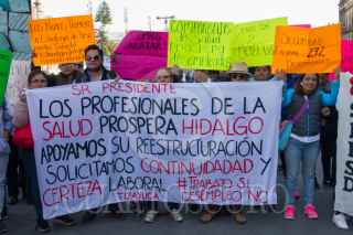 CIUDAD DE MÉXICO, 11MARZO2019.- Médicos, enfermeras y personal administrativo, de toda la República del casi extinto programa Prospera, se manifestaron frente a Palacio Nacional la mañana de este lunes, exigiendo al presidente Andrés Manuel López Obrador, una reubicación del personal y una certeza laboral. Esto en el marco del informe tras los primeros cien días de AMLO al frente de Mexico. FOTO: ROGELIO MORALES /CUARTOSCURO.COM