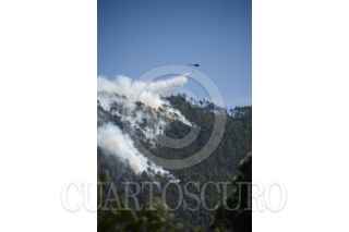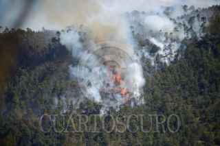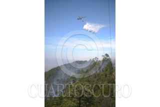 LAS VIGAS, VERACRUZ, 12MARZO2019.- A 72 horas del incendio en el ejido Toxtlacoaya y la reserva de San Juan del Monte el incendio ha devorado 500 hectareas de bosque confirmo la CONAFOR, con la participación de mas de 500 brigadistas, elementos de la PF, SEMAR, PC, y brigadistas intentan sofocar el incendio, esta mañana se utilizaron helicópteros de las fuerzas armadas así como de la Policia Federal para acarrear agua y espuma para mitigar el incendio y evitar que se esparciera controlando el 35% del total hasta el medio día de este martes, continuaran las labores. FOTO: ALBERTO ROA /CUARTOSCURO.COM