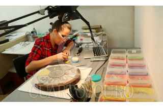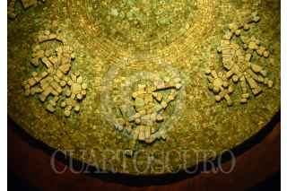 CIUDAD DE MÉXICO, 13MARZO2019.- Especialistas del Instituto Nacional de Antropología e Historia (INAH), realizaron la restauración de una obra mexica representada en un disco de turquesa con siete dioses guerrero como símbolos. FOTO: INAH /CUARTOSCURO.COM