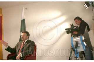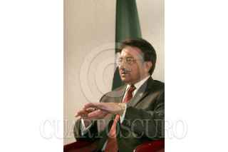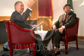 MEXICO D.F 03 DICIEMBRE 2004.- Pervez Musharraf, presidente de la república Islamica de Pakistan, durante su entrevista con el periodista Joaquín López Doriga. FOTO: Eunice Adorno/CUARTOSCURO.COM