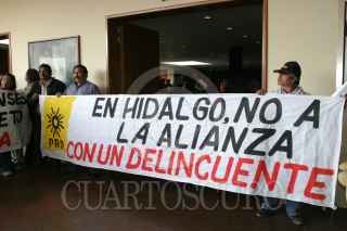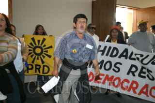 MEXICO, D.F. 03DICIEMBRE2004.- Un grupo personas se manifestaron en contra del candidato del PRD al gobierno de Hidalgo, durante el 18 pleno extraordinario de dicho partido. FOTO: Nelly Salas/CUARTOSCURO.COM