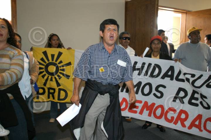 MEXICO, D.F. 03DICIEMBRE2004.- Un grupo personas se manifestaron en contra del candidato del PRD al gobierno de Hidalgo, durante el 18 pleno extraordinario de dicho partido. FOTO: Nelly Salas/CUARTOSCURO.COM