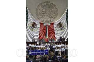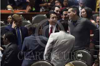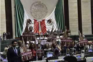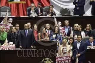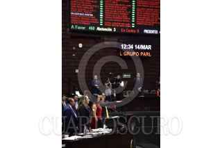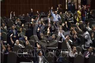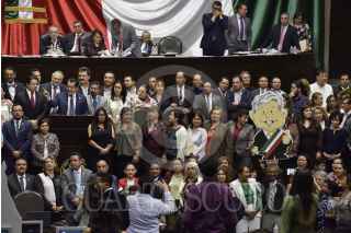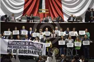 CIUDAD DE MÉXICO, 14MARZO2019.- Se lleva a cabo la Sesión Ordinaria de la LXIV Legislatura de la Cámara de Diputados, en donde se discute la aprobación del dictamen para reformar el artículo 35 Constitucional en materia Revocación de Mandato y Consulta Popular. En la imagen, la bancada de diputados de Morena. FOTO: MARIO JASSO /CUARTOSCURO.COM