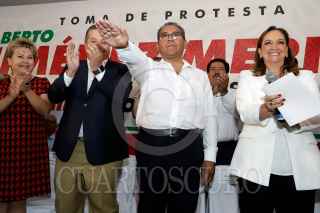 PUEBLA, PUEBLA, 15MARZO2019.- La Presidenta del CEN del PRI, Claudia Ruiz Massieu, tomó protesta al que será candidato a la gubernatura del estado Alberto Jiménez Merino, a la cual asistieron los ex gobernadores Guillermo Jiménez Morales, Melquiades Morales Flores y Mario Marín Torres. FOTO: MIREYA NOVO /CUARTOSCURO.COM
