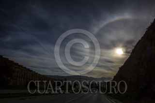 TIJUANA, BAJA CALIFORNIA, 15MARZO2019.- Un halo solar se observó en el cielo de la ciudad fronteriza, el cual se produce cuando los rayos del sol atraviesan gotas de agua suspendidas en la atmósfera, refractándose y formando un aro parecido a un arcoíris. FOTO: OMAR MARTÍNEZ /CUARTOSCURO.COM