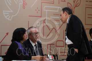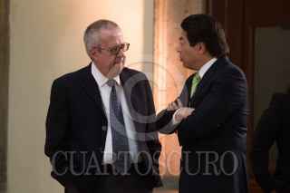 CIUDAD DE MÉXICO, 17MARZO2019.- José González Blanco Ortiz Mena, secretario de Medio Ambiente y Recursos Naturales (Semarnat), escucha a un ciudadano tras el termino del Foro Nacional "Planeación Juntos la Transformación de México", realizado en el Palacio Nacional. FOTO: MOISÉS PABLO /CUARTOSCURO.COM