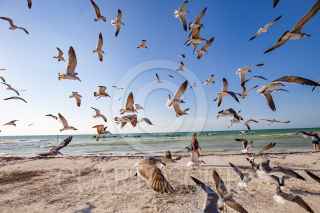 HOLBOX, QUINTANA ROO, 17MARZO2019.- Niños juegan con las gaviotas en la playa, muchas personas aprovecharon el fin de semana largo para salir a los diferentes destinos turísticos del país. FOTO: ELIZABETH RUIZ /CUARTOSCURO.COM
