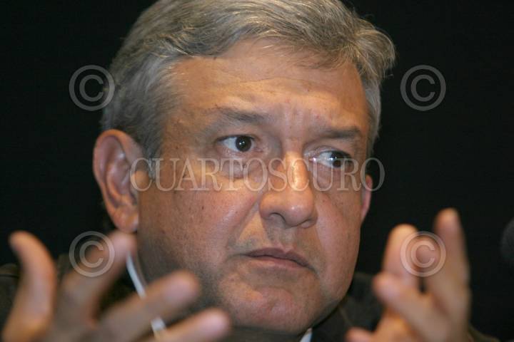 MEXICO, D.F. 04DICIEMBRE2004.- Andrés Manuel López Obrador, jefe de gobierno del la ciudad de México, durante el anuncio de la creación de redes ciudadanas a favor del jefe de gobierno. FOTO: Nelly Salas/CUARTOSCURO.COM