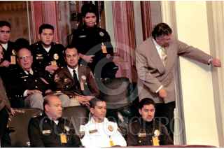 El director de la policia auxiliar Ramon Sosamontes acompañado de algunos de sus colaboradores asistieron como invitados al informe de labores de Rosario Robles. FOTO: Victoria Valtierra/CUARTOSCURO.COM