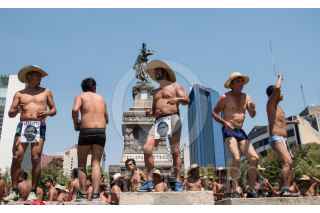 CIUDAD DE MÉXICO, 20MARZO2019.- Hombres del Movimiento de los 400 Pueblos, se manifiestan en la Glorieta de Cuauhtémoc, en exigencia de la libertad de presos políticos en en contra del gobernador de Veracruz, Yunes Linares y Manuel Mondragón y Kalb, ex secretario de seguridad pública de la Ciudad de México. FOTO: ANDREA MURCIA /CUARTOSCURO.COM