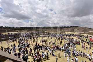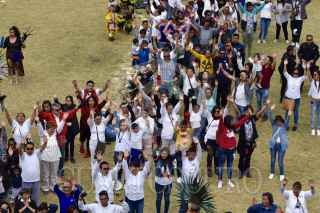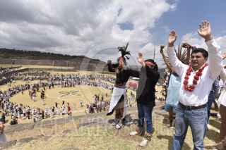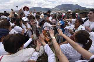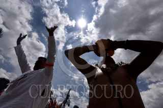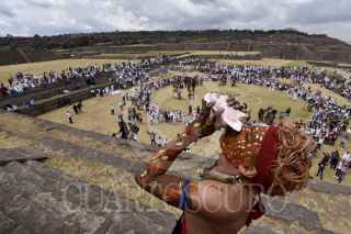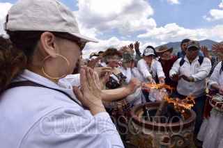 TENANGO DEL VALLE, ESTADO DE MÉXICO, 21MARZO2019.- Durante la clausura del Festival del Quinto Sol en la zona arqueológica de Teotenango cientos de personas se cargaron de energía con el encendido del Fuego Nuevo y la entrada de la primavera. FOTO: ARTEMIO GUERRA BAZ /CUARTOSCURO.COM