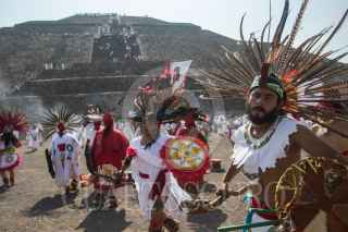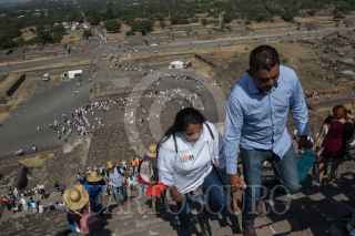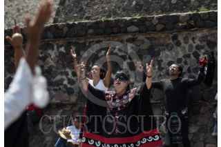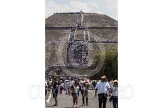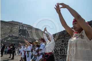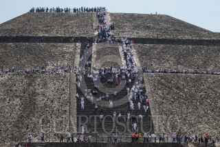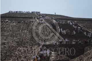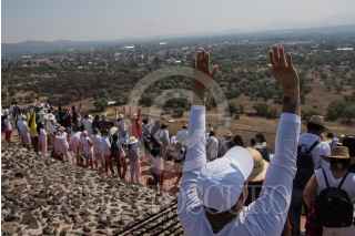 TEOTIHUACÁN, ESTADO DE MÉXICO, 21MARZO2019.- Miles de personas acudieron a la Pirámide del Sol para cargarse de energía este día que se celebra la entrada de la Primavera, a pesar de que el Equinoccio ocurrió ayer a las 15:58 horas. FOTO: ISAAC ESQUIVEL /CUARTOSCURO.COM
