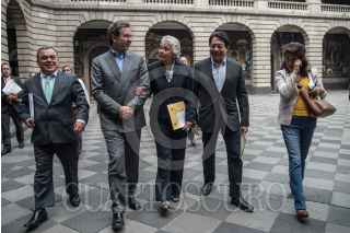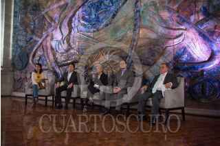CIUDAD DE MÉXICO, 21MARZO2019.- Adela Piña, presidenta de la Comisión de Educación; Mario Delgado, coordinador de Morena en Diputados, Olga Sánchez Cordero, secretaria de Gobernación, y Esteban Moctezuma, secretario de Educación Pública, ofrecieron conferencia de prensa para informar de sobre el inicio de las reuniones que sostuvieron con autoridades e integrantes de la CNTE, a la que se refirieron como positiva y constructiva, para poder llegar a acuerdos que permitan la aprobación del dictamen a la reforma educativa. FOTO: MARIO JASSO /CUARTOSCURO.COM