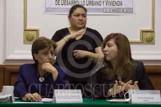 CIUDAD DE MÉXICO, 22MARZO2019.- Ileana Villalobos Estrada, titular de la Secretaria de Desarrollo Urbano y Vivienda (SEDUVI), las diputadas MarÍa Gabriela Salido Magos y Paula Soto Maldonado al termino de la Sexta Sesión Extraordinaria de la Comisión de Uso y Aprovechamiento del uso del Espacio Público en el Congreso Local, la cual abordó temas sobre la incorporación del espacio público y el catálogo de bienes históricos y artísticos a través de un inventario que dé certeza en el tiempo de protección y consolidación de la calidad accesible, incluyente, plural y sustentable del espacio público. FOTO: GRACIELA LÓPEZ /CUARTOSCURO.COM