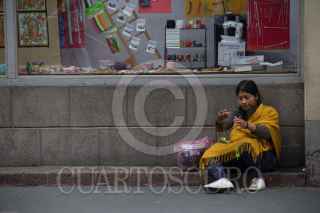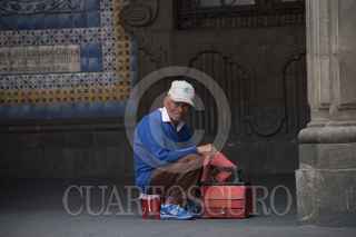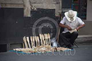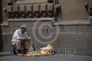CIUDAD DE MÉXICO, 22MARZO2019.- En las calles del Centro Histórico, un señor corta un rayador, mientras vende cubiertos para la cocina hechos de madera. FOTO: GRACIELA LÓPEZ /CUARTOSCURO.COM
