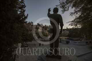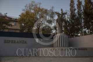 TIJUANA, BAJA CALIFORNIA, 23MARZO2019.- A 25 años del asesinato del candidato priista Luis Dondaldo Colosio Murrieta en la colonia Lomas Taurinas, como cada año los colonos recuerdan su aniversario luctuoso y aprovechan para limpiar la Plaza de la Unidad y Esperanza construida en honor a él. Actualmente esta colonia sigue siendo de difícil acceso sin embargo residentes del lugar mencionan que gracias a lo sucedido las calles fueron pavimentadas y las laderas ya cuentan con servicios públicos. En el marco del aniversario luctuoso la plataforma de streaming Netflix estrenó una serie titulada ¨Historia de un Crimen, Colosio¨ que narra los hechos de aquel 23 de marzo de 1994, la cual fue promocionada con anuncios colocados en las calles de la colonia donde sucedieron los hechos. FOTO: OMAR MARTÍNEZ /CUARTOSCURO.COM