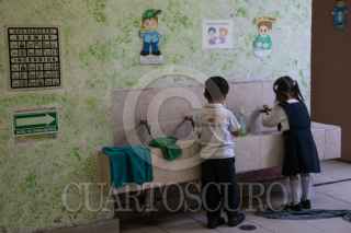 CIUDAD DE MÉXICO, 23MARZO2019.- Las maestras, Elizabeth Fuentes Luis, Ramóna Vargas Sandoval e Isabel Virginia Ferrer Durán, trabajan en la estancia infantil Centro Comunitario Madres Educadoras y mujeres Por EL Bienestar Infantil A.C. Casa Libertad ubicado en donde antes antes se encontraba la Ex Cárcel de Mujeres en Iztapalapa y ahora se encuentra la Casa Libertad UACM. Atienden alrededor de 60 niños desde 1 año hasta los 6 años. Su plan de estudio constructivista enseñan a los niños desde pequeños a levantar su plato de la mesa, trabajar en equipo, lavarse los dientes, ir al baño, entre otras actividades. La institución no recibe ningún apoyo gubernamental desde que inicio labores –hace 18 años- por lo que carece de materia prima y le falta mantenimiento, pese que entre las maestras se organizas para las actividades de limpieza y pintura. La cuota mensual que dan los padres son de $870 pesos; los niños tienen un horario de 8 am hasta las 17 horas. FOTO: ANDREA MURCIA /CUARTOSCURO.COM
