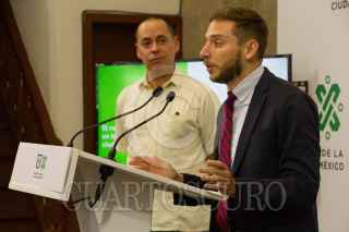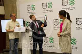 CIUDAD DE MÉXICO, 24MARZO2019.- José Alfredo Peña, Director Digital de Innovación Pública; Eduardo Clark García Dobarganes, Titular de la Agencia Digital de Innovación Pública y Claudia Sheinbaum Pardo, Jefa de Gobierno en la sala Francisco Zarco del Antiguo Palacio de Ayuntamiento durante el lanzamiento de la aplicación Alameda Central y el portal estadístico Wikiciudad, la primera pretende tener en una sola aplicación todas las apps lanzadas por el Gobierno de la Ciudad, mientras que el portal busca generar una plataforma en la cual los ciudadanos sean los creadores del contenido. FOTO: ROGELIO MORALES /CUARTOSCURO.COM