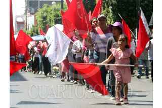 CUERNAVACA, MORELOS, 25MARZO2019.- La asistencia a marchas y manifestaciones políticas de niños es una constante en el estado; la práctica es realizada por muchas organizaciones lo que pone en peligro a los infantes. En la imagen una niña participa en una marcha de la organización Antorcha Campesina para exigir servicios públicos al Gobierno de Morelos. FOTO: MARGARITO PÉREZ RETANA /CUARTOSCURO.COM