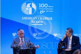 CIUDAD DE MÉXICO, 25MARZO2019.- Alfonso Romo, jefe de la oficina de la Presidencia, y Luis Foncerrada, asesor económico de American Chamber México, durante la 102.ª Asamblea General de Socios “México: un socio estratégico”, en el Club de Industriales. FOTO: GALO CAÑAS /CUARTOSCURO.COM