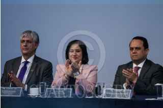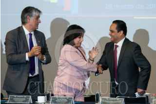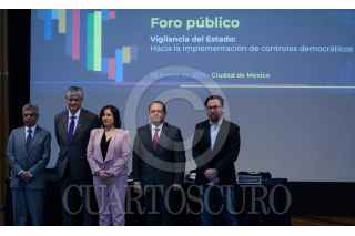 CIUDAD DE MÉXICO, 26MARZO2019.- Roberto Salcedo Aquino, subsecretario de Control y Auditoría de la Gestión Pública; Antonio Molpeceres, coordinador residente del Programa de la Naciones Unidas en México; Irma Eréndira Sandoval, secretaria de la Función Pública; Francisco Javier Acuña, comisionado presidente del Instituto Nacional de Acceso a la Información (INAI), y Juan Manuel Casanueva, director general del Social TIC Unidas en México, durante la inauguración del foro público “Vigilancia de Estado: Hacia la implementación de controles democráticos”, en las inmediaciones de la Secretaría de la Función Pública (SFP). FOTO: GALO CAÑAS /CUARTOSCURO.COM