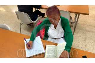 CIUDAD DE MÉXICO, 26MARZO2019.- Elvia Martínez Reséndiz es estudiante del Colegio de Ciencias y Humanidades (CCH) plantel Sur, de la UNAM; pertenece a la generación 1982, y luego de casi cuatro décadas regresó para concluir su bachillerato. Es una oportunidad que le brindó la vida, porque siempre le gustó estudiar, dijo. Ella tomó la decisión de concluir este ciclo cuando una de sus sobrinas le preguntó si se había dado de baja; entonces se dio cuenta de que su situación escolar le permitía continuar, y su emoción no tuvo límites. Recibió apoyo de sus maestros, lo que le permitió realizar sus trabajos, tareas y proyectos. Ha realizado su servicio social en diferentes opciones técnicas como análisis clínicos, administración, desarrollo infantil y urgencias médicas. “Me siento plena y feliz, porque a pesar del tiempo me di cuenta que puedo interactuar todavía con la juventud, y puedo a estar a la par”, compartió Elvia. FOTO: UNAM /CUARTOSCURO.COM