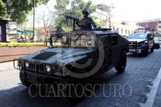 CUERNAVACA, MORELOS, 25MARZO2019.- Patrullaje mixto de policía estatal y militares en una calle de la capital. FOTO: MARGARITO PÉREZ RETANA /CUARTOSCURO.COM