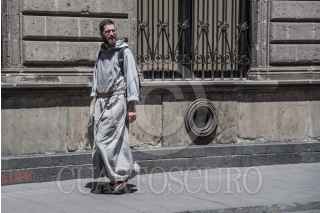 CIUDAD DE MÉXICO, 26MARZO2019.- Un monje camina sobre la calle de Donceles en el Centro Histórico. FOTO: MARIO JASSO /CUARTOSCURO.COM