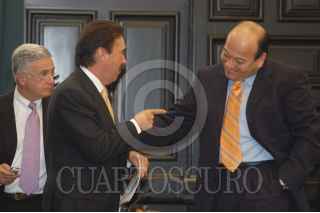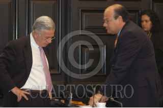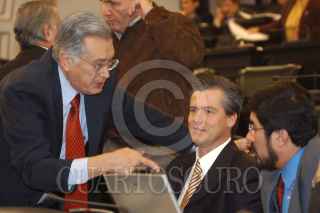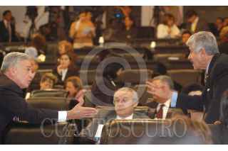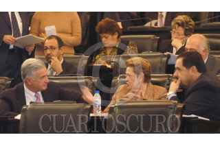 MEXICO D.F. 07DICIEMBRE2004.- Los legisladores Demetrio Sodi del PRD, Laura Alicia Garza del PRI y Hector Larios del PAN conversan durante la sesión ordinaria de la Càmara de Senadores. FOTO: Germán Romero/CUARTOSCURO.COM
