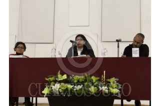 PACHUCA, HIDALGO, 27MARZO2019.- Hoy se inauguró la tercera edición de la Cátedra Patrimonial Pedro Valtierra en la Universidad Autónoma del Estado de Hidalgo. En la imagen, Lucía Cuevas y el historiador Jaime Robledo durante la ponencia "El archivo en la era digital. Función y memoria". FOTO: PEDRO VALTIERRA/ CUARTOSCURO.COM