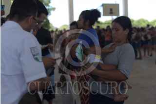 ACACOYAGUA, CHIAPAS, 27MARZO2019.- Representantes del Instituto Nacional de Migración acudieron a la unidad deportiva de este municipio para realizar un pre registro a los migrantes y así iniciar el trámite para el libre tránsito por México, de esta forma ellos podrán llegar sin problemas a la frontera con Estados Unidos, está caravana es la primera que logra este trámite tan cerca de la frontera sur del país. FOTO: ISABEL MATEOS /CUARTOSCURO.COM