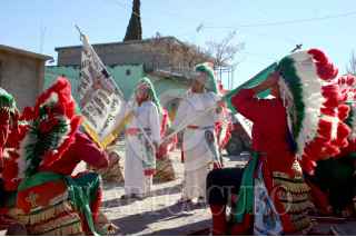 CIUDAD JUAREZ, CHIHUAHUA 12DICIEMBRE2004.- Un grupo de jóvenes vestidos de apache ejecutó la danza de ¨matlachines¨ como parte de los festejos en honor a la Virgen de Guadalupe. Los franciscanos que participaron en su fundación le otorgaron el nombre Mision de Guadalupe de los indios mansos de Paso del Norte. Los indios mansos, comparten la raíz étnica con los apaches motivo por el que utilizan el mismo tipo de penacho e indumentaria. FOTO: JGuadalupe Perez/CUARTOSCURO.COM