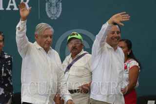 POZA RICA, VERACRUZ, 29MARZO2019.- Durante su gira por la entidad veracruzana, el Presidente Andrés Manuel López Obrador, anuncio una inversión en obras por 100mdp en la región, esto durante la ceremonia de entrega de programas integrales de bienestar de su administración, ademas pidió paciencia a la ciudadanía invitando a lograr juntos que "al elefante se le vayan quitando las reumas" para echar a andar todo el aparato gubernamental, así mismo señalo que no habrá pelea con el gobierno de EU sino que su gobierno actuara con prudencia. FOTO: CUARTOSCURO.COM