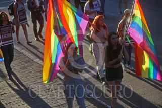 GUADALAJARA, JALISCO, 30MARZO2019.- Decenas de mujeres que conforman un grupo de la sociedad Lésbico tapatía marcharon del Andador Escorza hasta la Plaza de la Liberación, esto para exigir respeto, pedir que acabe el machismo y por las mujeres victimas de violencia. FOTO: FERNANDO CARRANZA GARCIA / CUARTOSCURO.COM