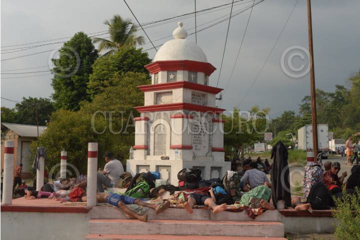 ESCUINTLA, CHIAPAS, 30MARZO2019.- Después de doce horas de caminar sobre la carretera los más de 1000 migrantes provenientes de Centroamérica y Cuba, tomaron un descanso en este municipio. Pretender emprender el viaje a la media noche para unirse a la caravana que se encuentra en Mapastepec. FOTO: ISABEL MATEOS /CUARTOSCURO.COM