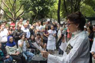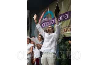 CIUDAD DE MÉXICO, 31MARZO2019.- Se celebraron los quince años del Círculo Teatral, un inmueble ubicado en avenida Veracruz en la colonia Condesa, dedicado a la muestra de obras de teatro y a la formación de jóvenes actores, este recinto tuvo que cerrar sus puertas debido al sismo del 19 de septiembre de 2017, que lo dejo severamente dañados, a partir de ese día tuvo que bajar el telón. Hoy al medio día sus fundadores Víctor Carpinteiro y Alberto Estrella convocaron amigos, interpretes, estudiantes y decenas de personas que han pasado por este teatro para hacer una lectura y conmemorar su cumpleaños, Estrella prometió que el próximo aniversario será celebrado desde sus entrañas, ya que buscan que este espacio reabra sus puertas. Entre las invitadas estuvieron la actriz Ofelia Medina, quien fue una de las primeras actrices en presentarse con la obra "Un tranvía llamado deseo"; Isaura Espinoza y el flautista Horacio Franco, entre otros. FOTO: MOISÉS PABLO /CUARTOSCURO.COM