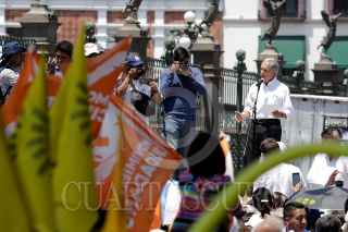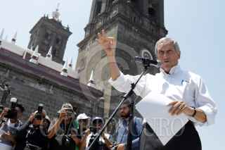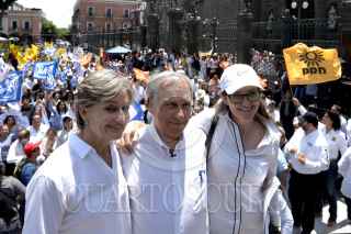 PUEBLA, PUEBLA, 31MARZO2019.- Enrique Cárdenas candidato común del PAN, PRD y MC inicia su campaña por la gubernatura de Puebla, en el zócalo de la ciudad. FOTO: MIREYA NOVO /CUARTOSCURO.COM