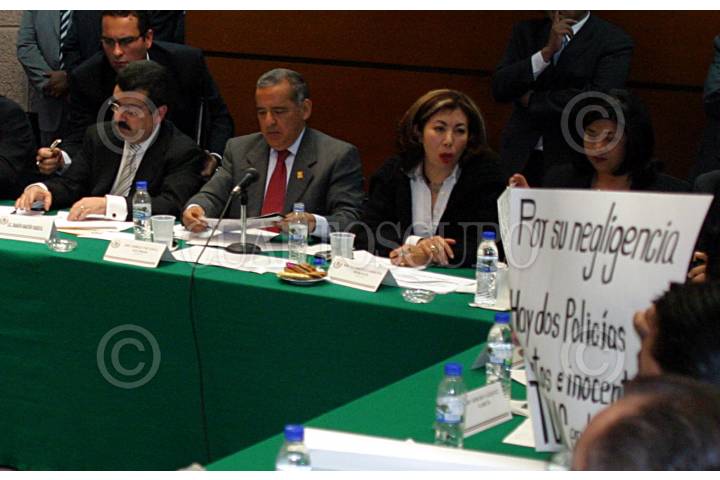 MEXICO, D.F. 13 DICIEMBRE 2004.- Diputados integrantes de la comisión de seguridad pública llevaron piedras a la comparecencia de Ramón Martín Huerta, secretario de Seguridad Pública Federal, en alución a su declaración de que no utilizaron helicopteros en el caso Tláhuac ya que ... ¨podrían ser derribados a pedradas...¨. FOTO: Sandra Perdomo/CUARTOSCURO.COM